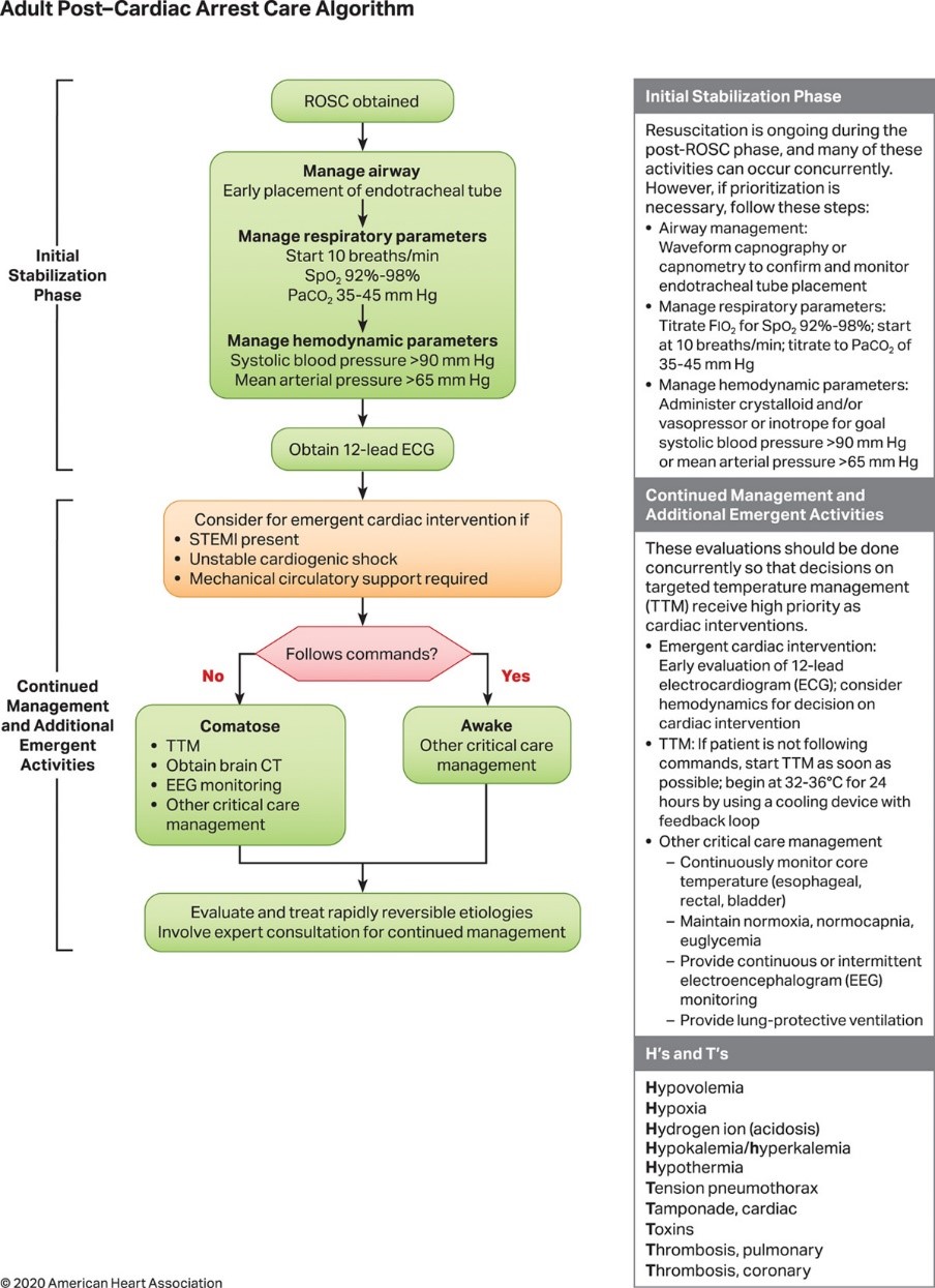 แต่ผู้ป่วยยังอยู่ในสภาพที่ไม่รู้สึกตัว ให้เริ่มทำ targeted temperature management (TTM) โดยการทำให้อุณหภูมิกายลดลงเหลือ